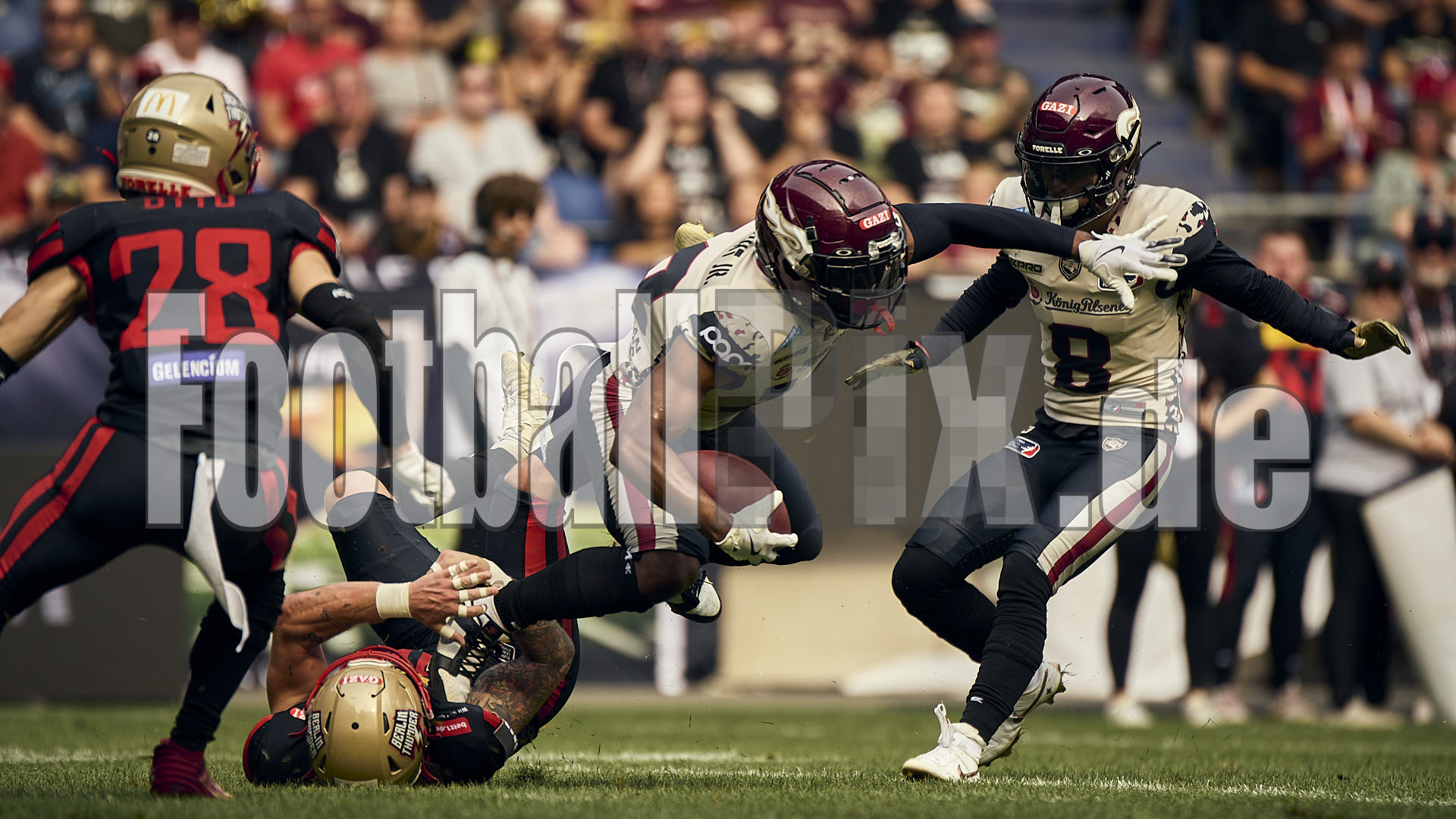 Die Fotos der ELF-Spiele unterliegen spezifischen Nutzungsbedingungen. Der Download und die Nutzung dieser Fotos ist nur nach vorheriger Genehmigung von Footballpix und gegebenenfalls nach Zustimmung der Liga gestattet. Eine redaktionelle, kommerzielle oder nicht-kommerzielle Nutzung sowie die Veröffentlichung in sozialen Medien sind ohne ausdrückliche Genehmigung nicht zulässig.
