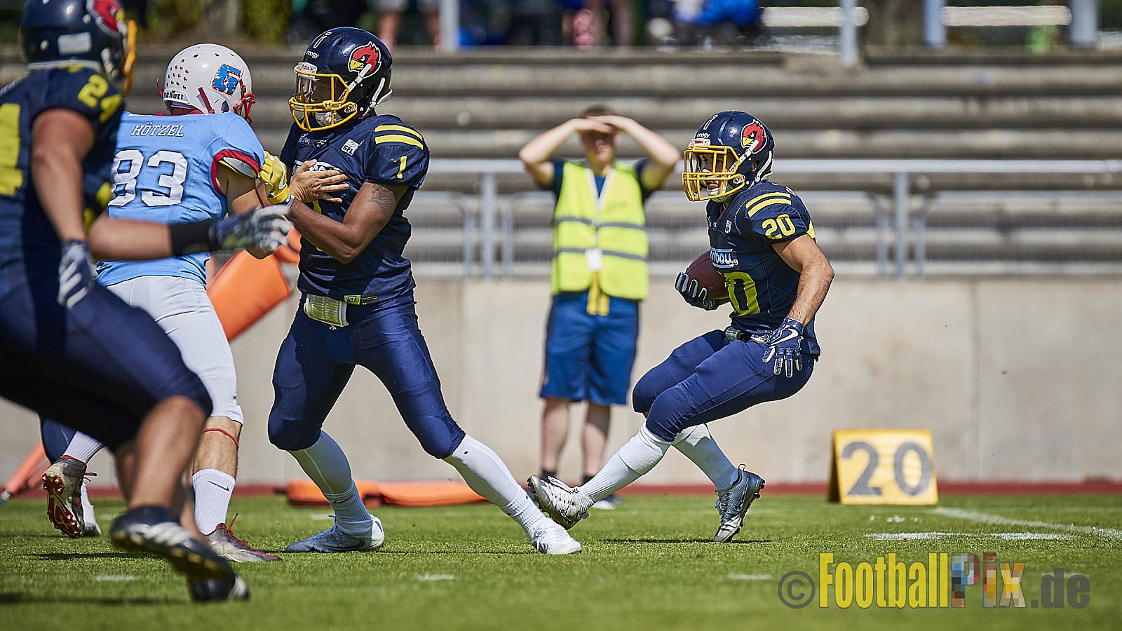 Regionalliga NRW Season 2018 Essen Assindia Cardinals vs. Bonn Gamecocks am 14.07.2018 im Stadion Am Hallo, Hallostraße, 45141 Essen. Die Essen Assindia Cardinals haben das Spiel 28:03 gewonnen.